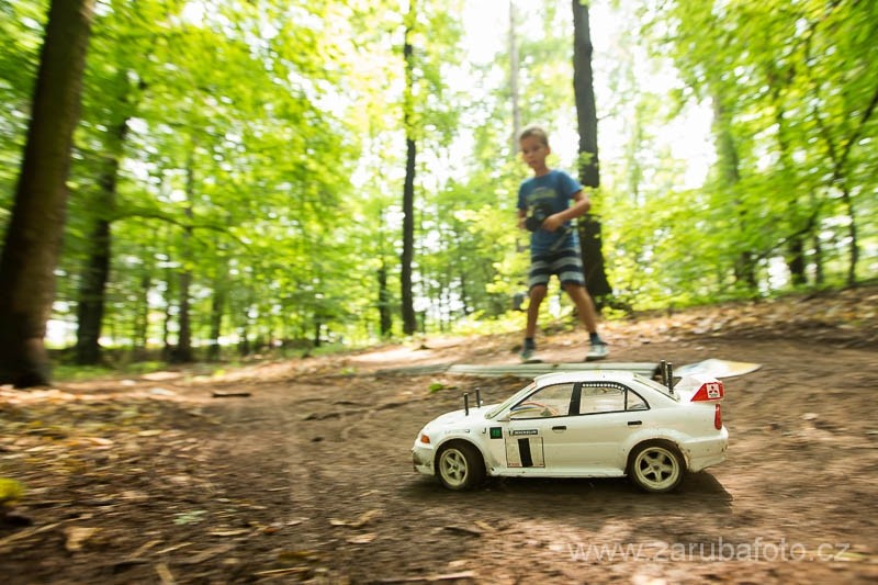 5. Mudřík Martin - Michelin, to je pro mě to nejlepší, co může RC rally nabídnout. Lukáš je zkušený pořadatel a záruka perfektního závodu. Zázemí je na Hvozdné perfektní. Tratě, tak jak má být. Lesní pěšina odněkud někam. Technicky náročný terén, převýšení, mostky, sjezdy, přírodní skoky, je tam všechno co pořádně prověří techniku i jezdce. Letos to bylo těžší tím, že to byl čtvrtý závod v krátkém čase a ještě končilo období úmorných veder. Noční déšť to byla třešnička na dortu. V sobotu jsem jel MČR a měl drobné technické problémy, auto se dvakrát nečekaně na Rz zastavilo tak na 20 sekund, ale v poslední Rz jelo perfektně, tak jsem si řekl, že to byla jen náhoda. Ráno pět minut před UP jsem zjistil, že motor jede na 20% a ještě trhavě. Na změnu bylo pozdě. Riskl jsem to a prostříkl ho WD-čkem. Nepomohlo to, už se netočil vůbec a jenom bzučel. Tak jsem hu profoukal vzduchem. Minutu před UP se chytl a roztočil. Na první mokré jsem to riskl a nasadil řezané bloky a zajel druhý čas. Paráda, všechno je růžové a motor měnit nebudu. Deset minut před startem druhé jsem ho pro jistotu ještě testl. Co myslíte? Motor je opět mrtev. Vyrval jsem komplet combo a dal náhradní. Nastavení už jsem nestihl. Výsledek 15. místo, ale pořád jsme ve hře. Pořád lepší než VP. Nebudu to zdržovat. Tenhle motor nedával potřebný výkon, tak tam šel třetí. Do toho ještě dvakrát vypadl šroubek z řízení a auto sem tam nezatočilo a jelo rovně. No bylo toho na jeden závod požehnaně. Zazávodil jsem si parádně a zamontoval na celou sezonu dopředu. V téhle konkurenci jsem čekal, že pojedu tak někde o sedmý flek. Tak výsledné páté místo po tolika problémech je vlastně malý zázrak. Párkrát jsem utekl hrobníkovi z lopaty. Hodně silný závod. Tenhle si budu pamatovat ještě hodně dlouho. A proto se už teď těším na příští ročník, který bude patřit k vrcholům sezóny.