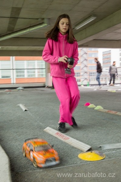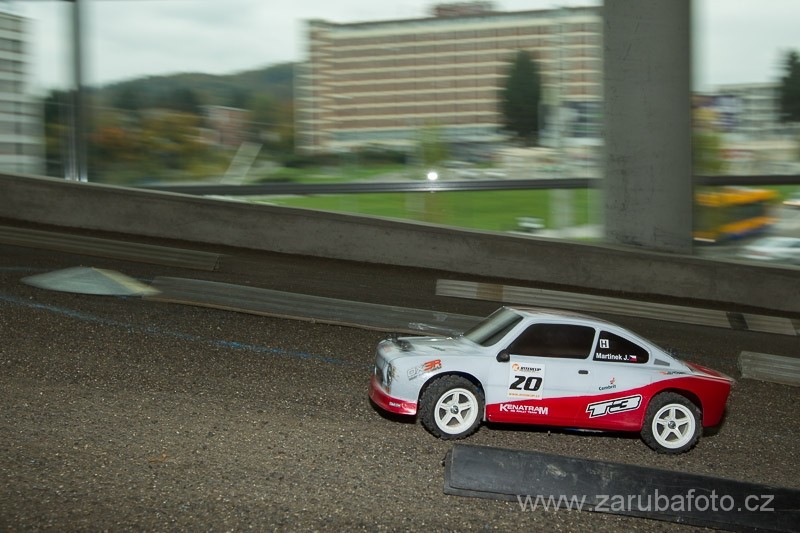 2. RC rally Zlín se mě osobně líbila. Tento uklouzaný povrch mám rád a jízdu si vždy užívám. S vědomím, že v garážích se nedá nic zatloukat do země a křída tu na kluzkém betonu moc nedrží, bylo značení žlutou páskou přehledné a slušný kompromis, který vydržel po celý závod.