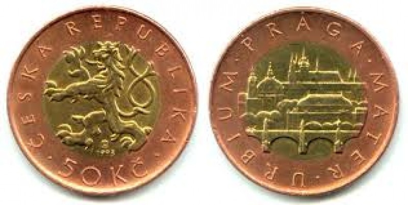 Jedna kovová mince - 50 korun českých