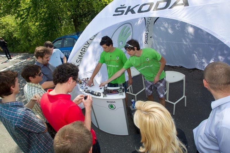 Do areálu byly přivezeny dvě totožné Škody Fabie 1.2 TSI s tím rozdílem, že jedna z nich (označená červeným křížkem) měla simulovat zanedbávaný vůz s velkým množstvím najetých kilometrů (cca 200 000 km), měla vyteklé tlumiče, vytlučené silentbloky, opotřebené brzdy a „rozštelovanou“ geometrii. Druhý vůz (označený zelenou „fajfkou“) byl nepoškozený, nový. V těchto dvou automobilech se postupně střídali přítomní novináři (TV Prima, Svět motorů, Sport 5, iDnes, Autohit, Garáž TV) a projížděli se po připravené trati a následně i na slalomu za odborné instruktáže továrního jezdce Škody Motorsport- Jana Kopeckého.